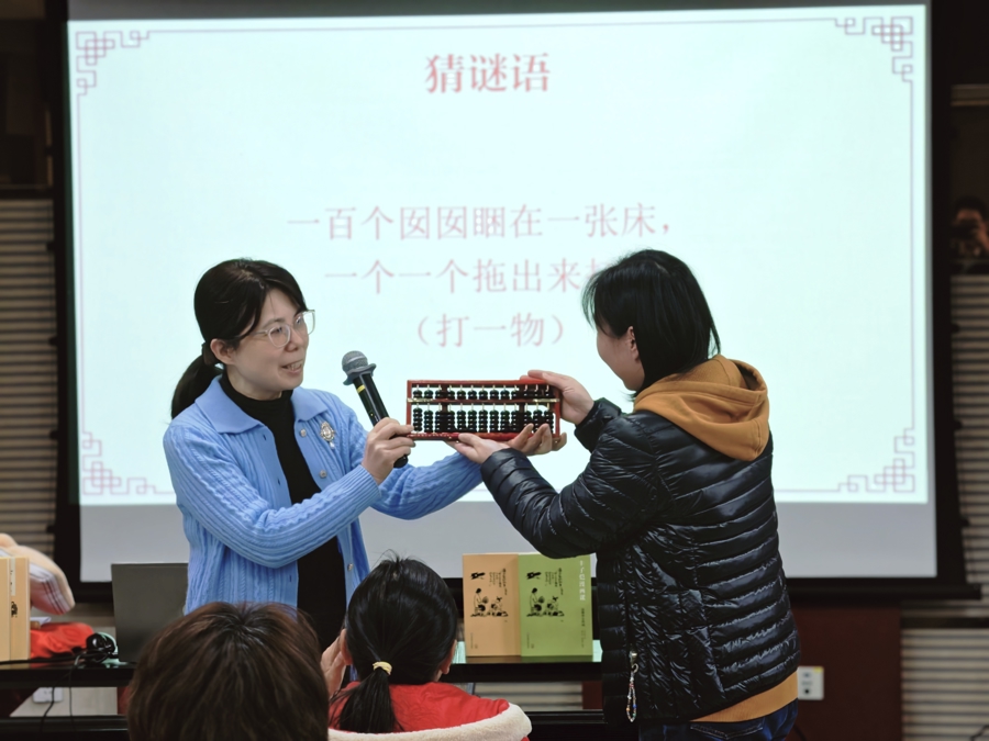 大岁首七下昼的宝山区藏书楼多功能厅,化身为一场好意思丽又忻悦的新对联欢会现场:大小读者跟中魔法大姨张弘坐上“时光机”,穿越回60多年前的丰子恺家的春节,在“日月楼”里对对子、猜密语、击饱读传花、玩相配的“桌游”、学唱少年版的“长亭外”,耳畔传来乡间叫卖声里的新年倒计时……